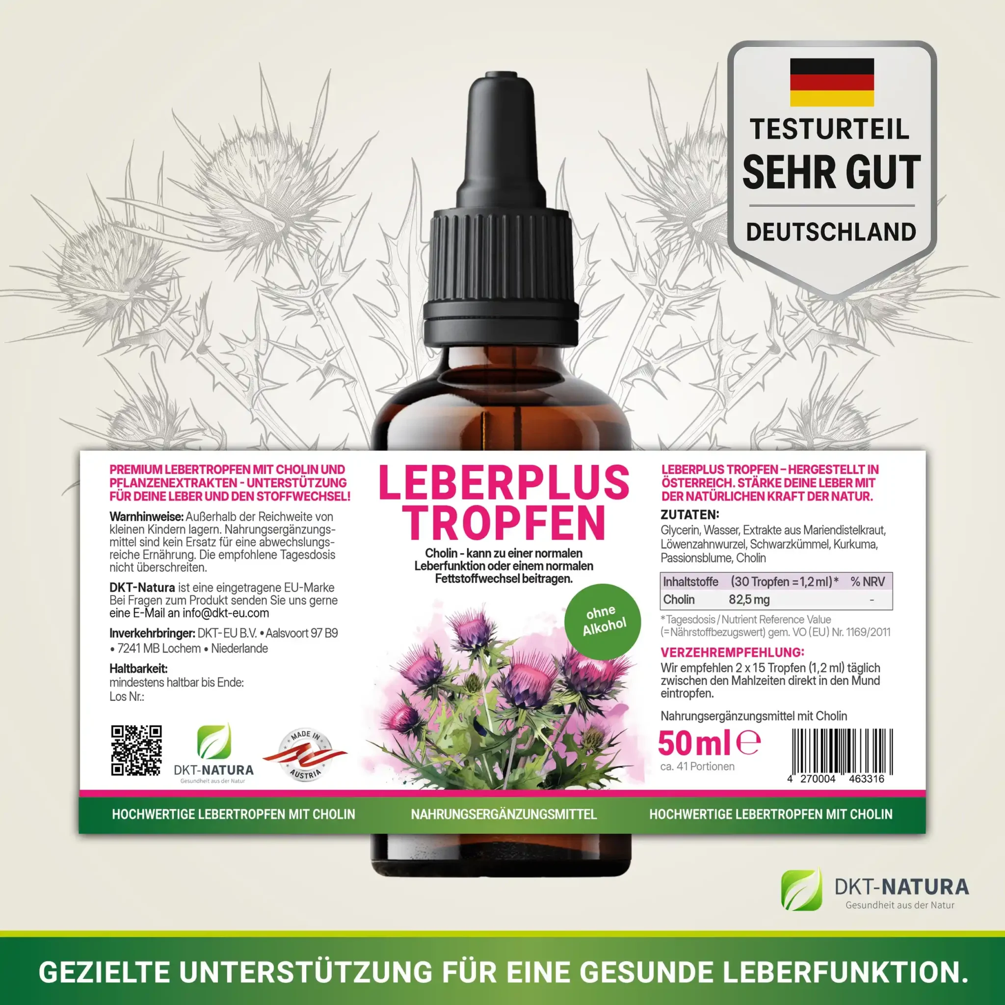 Nahrungsergänzungsmittel sind keine Arzneimittel. Leberplustropfen von DKT Natura sind nicht zur Behandlung, Vorbeugung oder Heilung von Krankheiten bestimmt